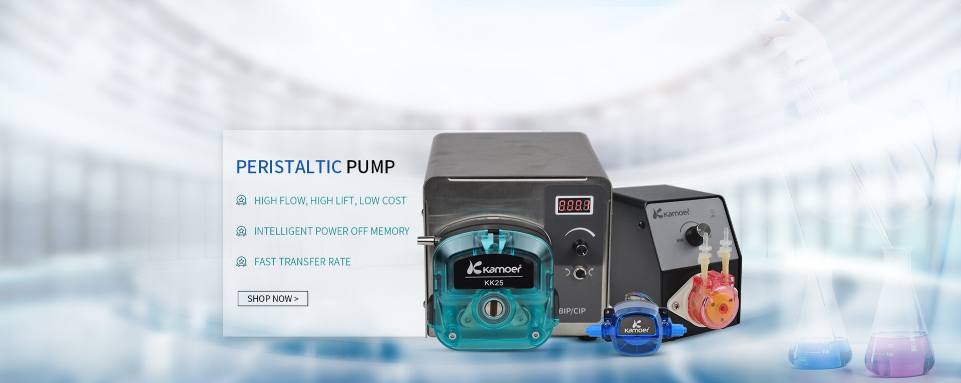 Kamoer Fluid Technology Co., Ltd. is set research and development, production, sales and service in one. Products include: peristaltic pump, peristaltic pump, diaphragm pump, vacuum pump, liquid dispensing system, etc .: Accessories: pump tube, plastic fittings, micro-valves and other precision instruments.