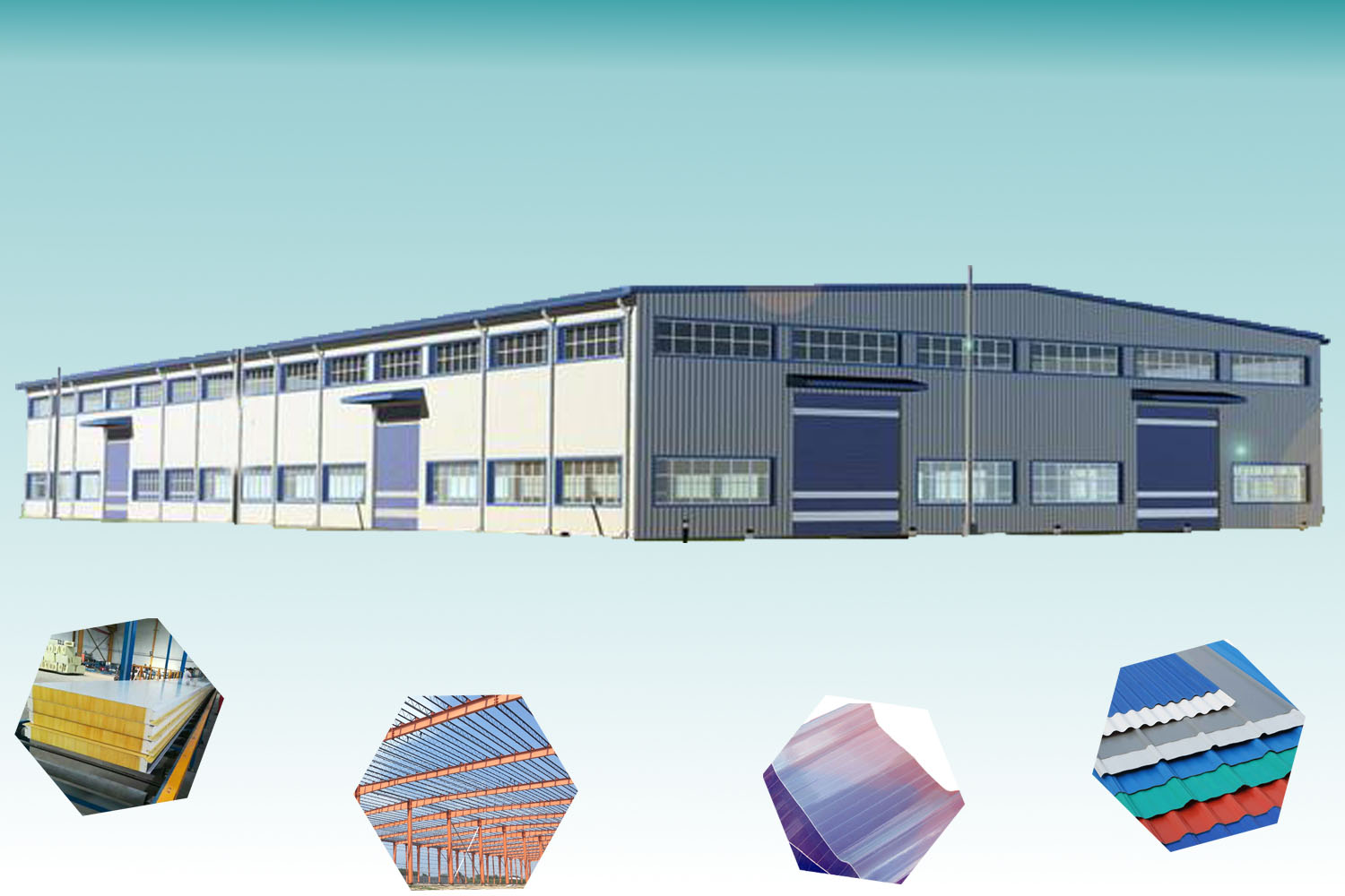 We can also provide these kinds of steel color sheeting, insulation sandwich panel, C/Z purlin, FRP panel,relevant application materials for steel structure projects and so on.