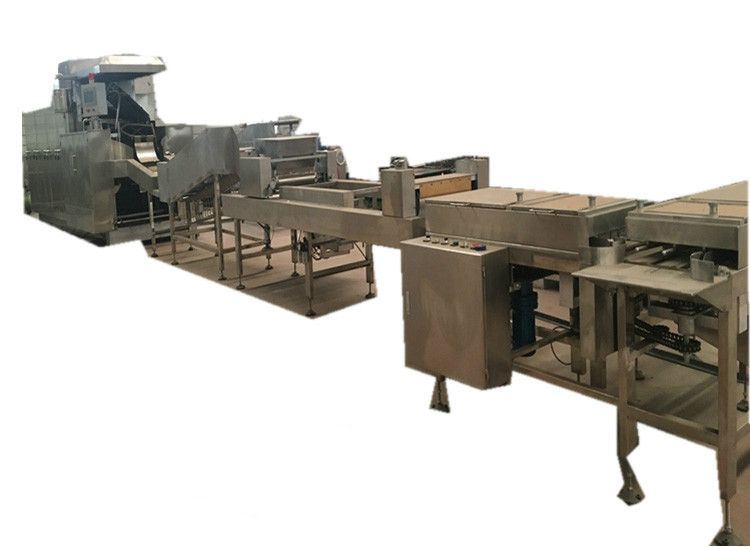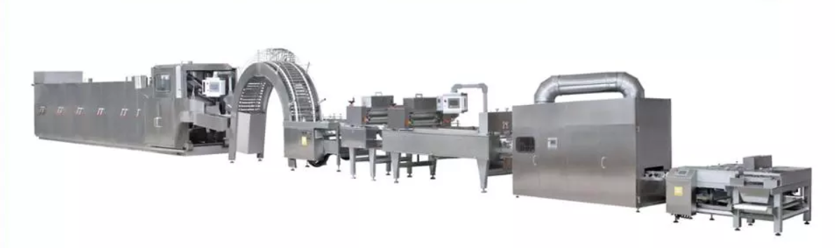 batter mixing ---- wafer baking ---- cooling ---- cream spreading ---- book cooling ---- cutting