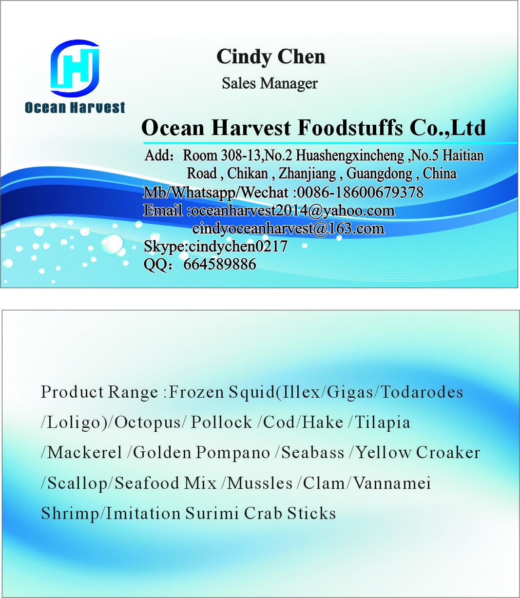 Ocean Harvest foodstuffs Co.,Ltd Is A Major Supplier Of Frozen Seafood Products From China To The World, The Company Specialize In Producing And Exporting High Quality Frozen Seafoods, our factories are EU/FDA approved and BRC/MSC certified. The production process complies fully with HACCP, FDA and EU quality standard .