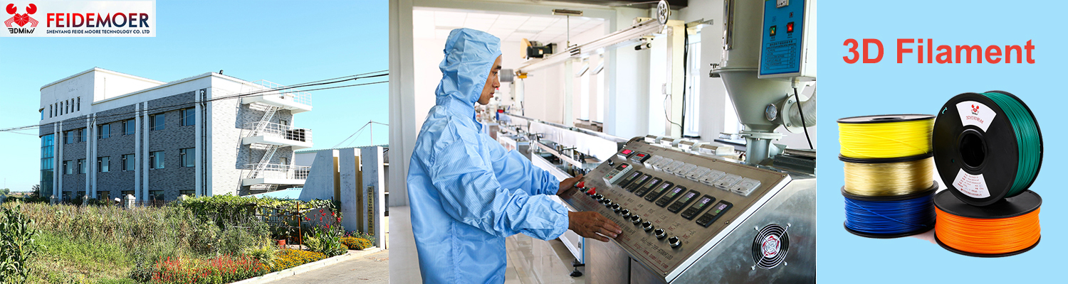 Shenyang Feide Moore Technology Co. Ltd was established in 2013, we are specializing in studying, producing and exporting of 3D printer filament, we have our own R & D department, which enable us to provide a wide range of 3D printer filament, such as PLA, ABS , HIPS, PA, PC, PETG ,PVA, TPU , Wood, etc. Over 20 types, more new filament are under development.